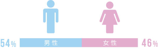 男女比はほぼ半々。だんだん女性比率が上昇してきています。