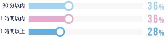 平均通勤時間は44分。30分以内という社員が最も多いです。