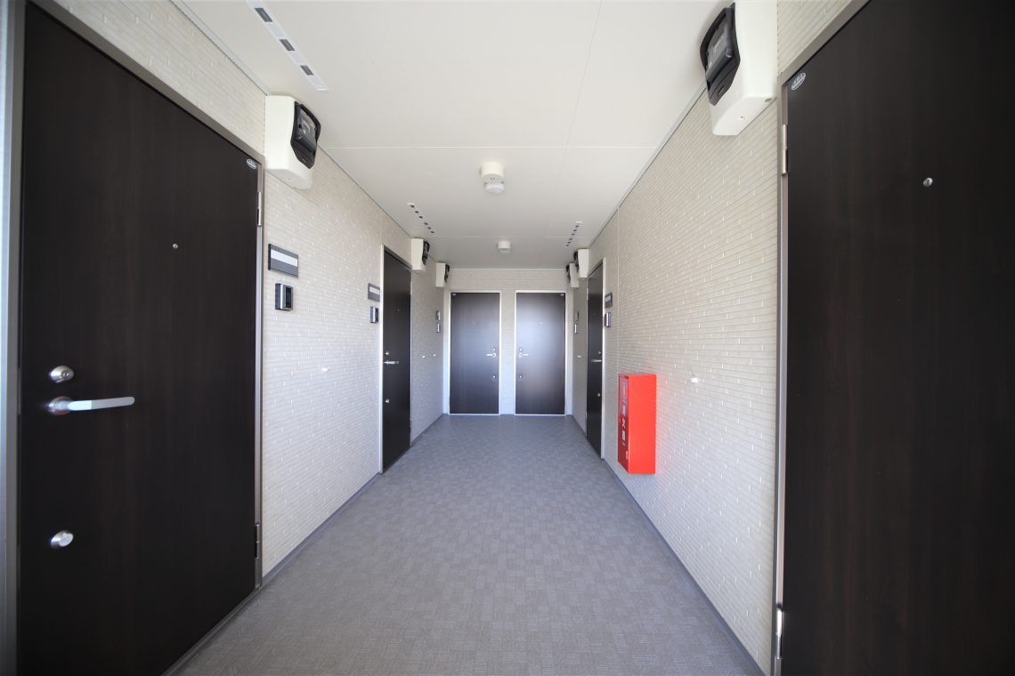 建物外部からの視線を遮り、防犯面の強化やプライバシーを守りやすい内廊下の設計。